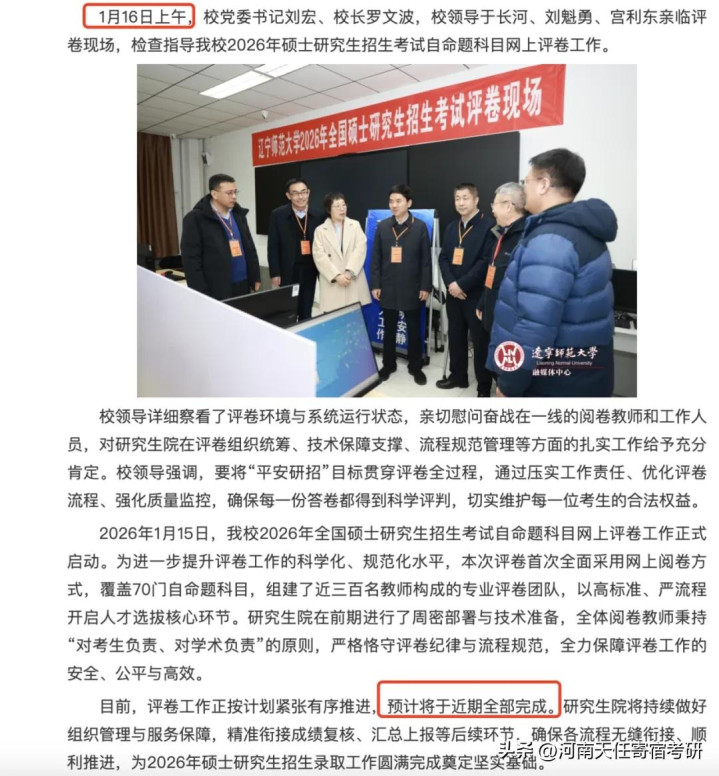 辽宁师范大学评卷工作正按计划紧张有序推进,预计将于近期全部完成。
