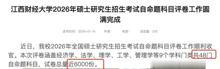 近日,江西财经大学校2026年全国硕士研究生招生考试自命题科目评卷工作收官。