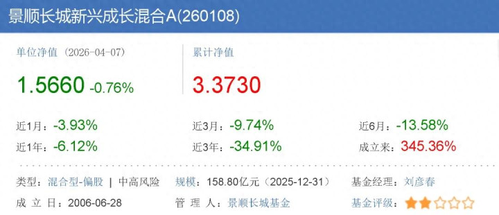 刘彦春措置的最闻明基金当属景顺长城新兴成长搀杂A,该基金2025年收益率为-2.40%。