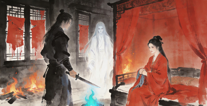 周明轩屏住呼吸,只见房门“吱呀”一声被推开,一道白衣身影飘了进来,长发披肩,面色惨白如纸。沈玉容吓得浑身发抖,紧紧抓住周明轩的衣袖。