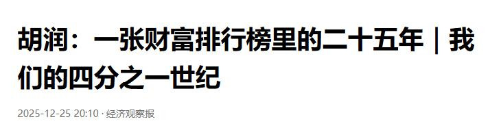 更值得咀嚼的是那组行业坐标,2018年胡润百富榜上约三分之一是配置商,2025年降至1%。